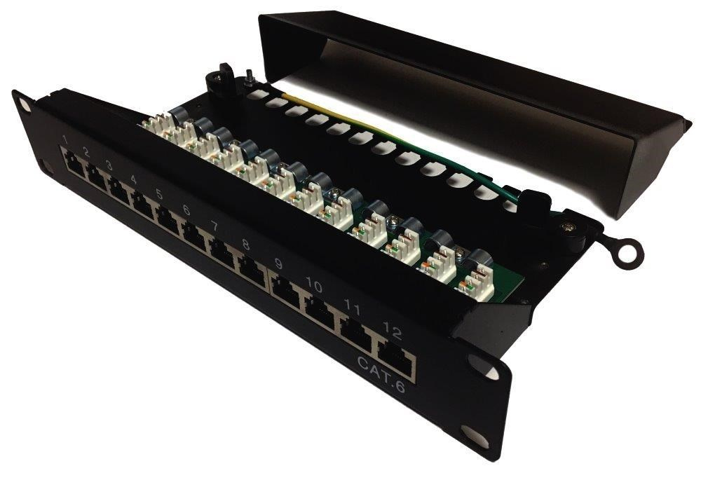 Akční nabídky na váš e-mailPatch panel osazený 12 porty s Cat.6, vhodný pro narážeč typu LSA. Vnitřní kryt patch panelu dovoluje manipulaci v malé skříni bez rizika vytáhnutí kabelu ze zářezového konektoru. Vyvazovací koncovky dovolují pevně přitáhnout kabelový vývod k panelu. Součástí zařízení je zemnící přívod a napojení stínění přímo na PCB.