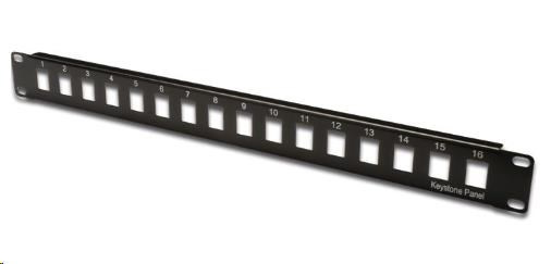 Neosazený 19" modulární patch panel XtendLan 16port, černý !!Balení neobsahuje montážní sadu M6!!.