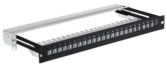 Neosazený 19" modulární patch panel LEXI-Net 24port, černý, výsuvný 1U.