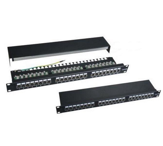 Osazený 19" Patch panel XtendLan 24port, STP, Cat5E, černý Svorkovnice: duální (blok110/krone).