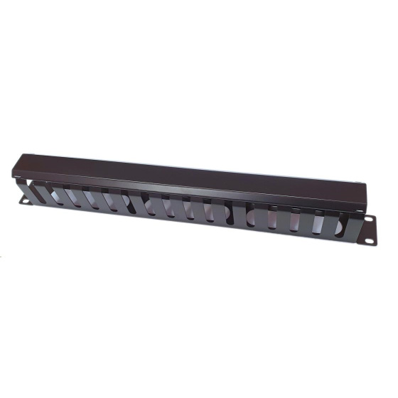 19" vyvazovací panel 1U, celokovový s krytem 40x70mm, průchozí, černý.