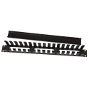 19" vyvazovací panel 1U, celokovový s krytem 40x70mm, průchozí, černý