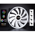 Ventilátory série AURA EVO jsou vybaveny čtyřmi konektory, 4pin PWM pro napájení a řízení otáček ventilátoru, 4pin PWM IN pro propojení s dalším ventilátorem a dvěma 3pin standardními ARGB konektory (IN a OUT), což umožňuje propojení více kusů do série a následné zapojení do základní desky PC pokud je tato vybavena 3pin ARGB konektorem v opačném případě je možno využít jednoho ze dvou námi dodávaných řadičů. Také pro řízení otáček ventilátorů máte možnost volby zapojit ventilátory přímo do základní desky a nebo opět řídit jejich otáčky dálkovým ovládáním, který je součástí našeho řadiče (možnost úpného zastavení).