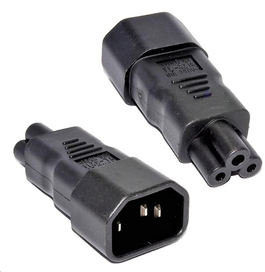 Akční nabídky na váš e-mailNapájecí adaptér v černém provedení pro notebook, na vstupu konektor IEC C14 male a na výstupu "trojlístek" nebo "Mickey mouse" IEC C5 female.