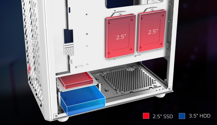 Provedení skříně:Midi Tower; Barva skříně:Bílé; Počet pozic 3.5" (HDD):2; Počet pozic 2.5" (SSD):2.Více