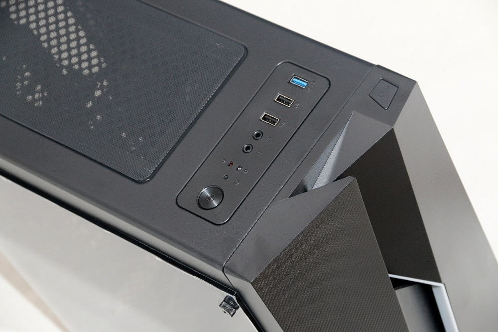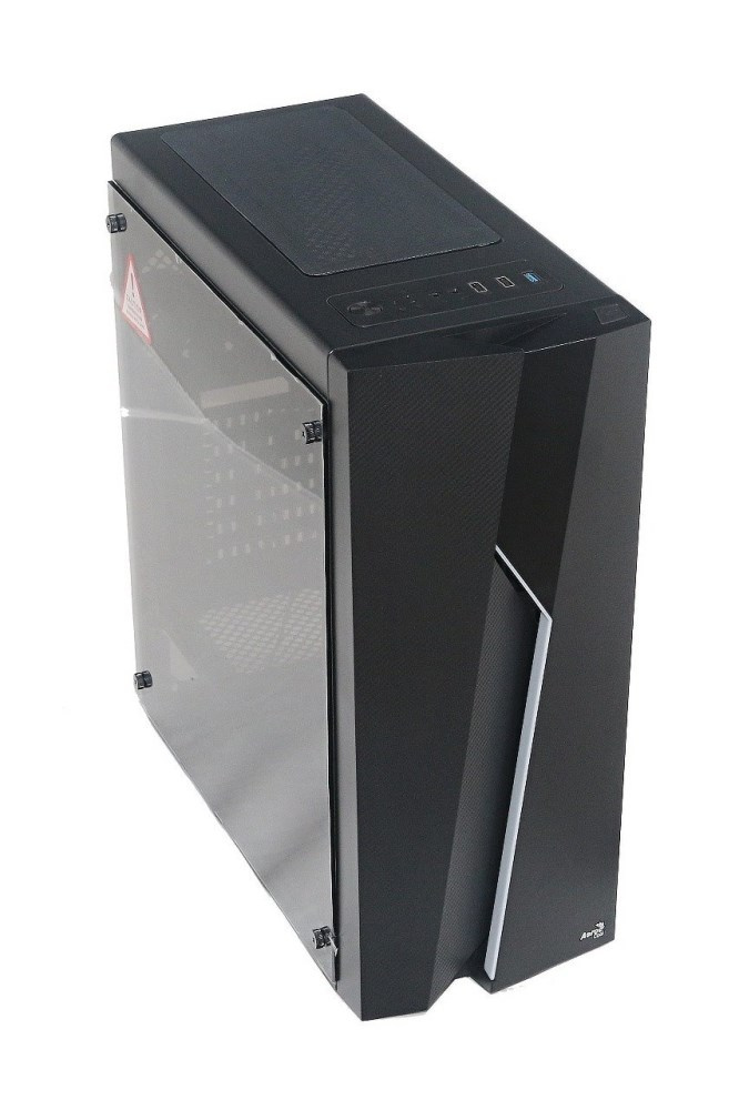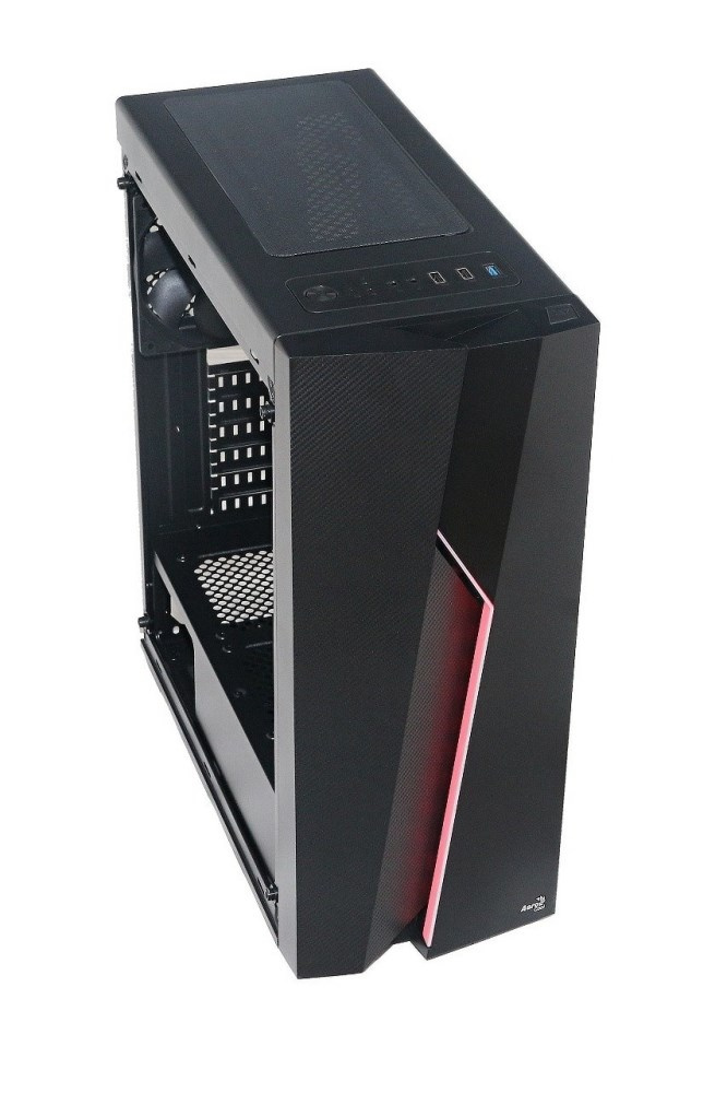 Akční nabídky na váš e-mailPočítačová skříň se skleněným bočním krytem a RGB podsvětlením panelu.