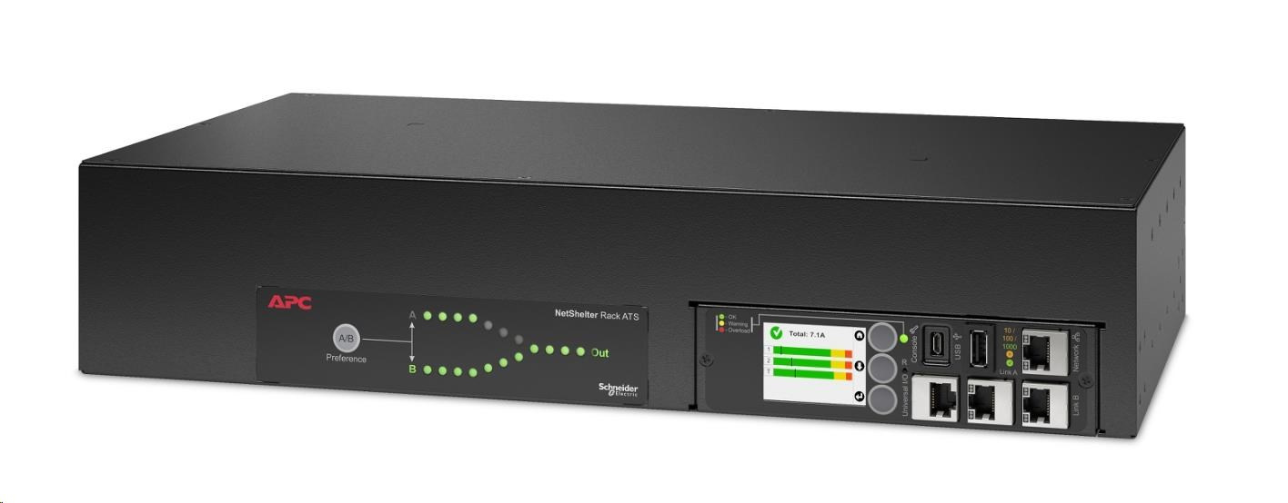 APC Rack ATS, 230V, 32A, (16)C13 (2)C19 out, 2U, IEC 309 32A 2P+E (2) (2.44m)