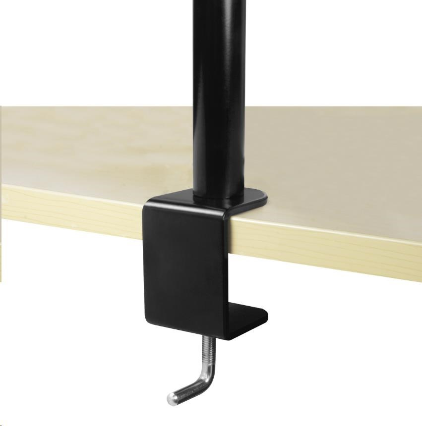 The monitor arm can be mounted on most surfaces with the sturdy and adjustable clamp which fits the edge of your desk in various thicknesses.
