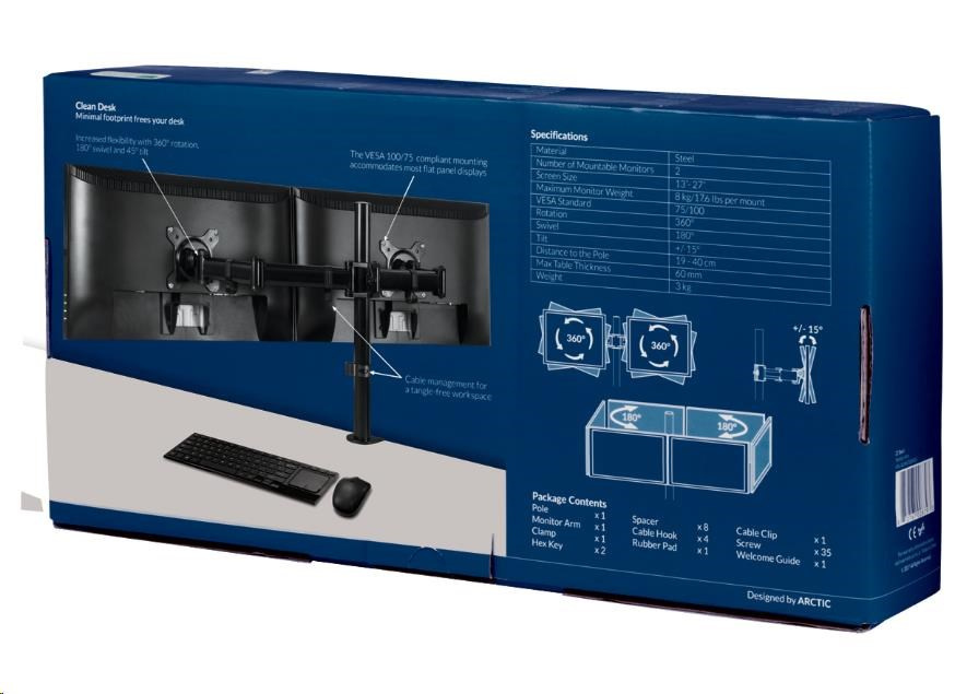 Increase your efficiency with the Z2 Basic dual monitor arm: It is often helpful to work with multiple screens at the same time to keep important applications parallel in view. The Z2 Basic extends your view and thereby simplifies not only your work, but it also allows you to work more efficiently.