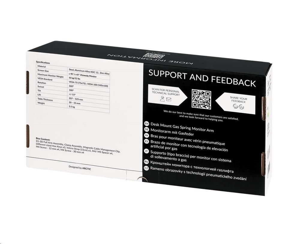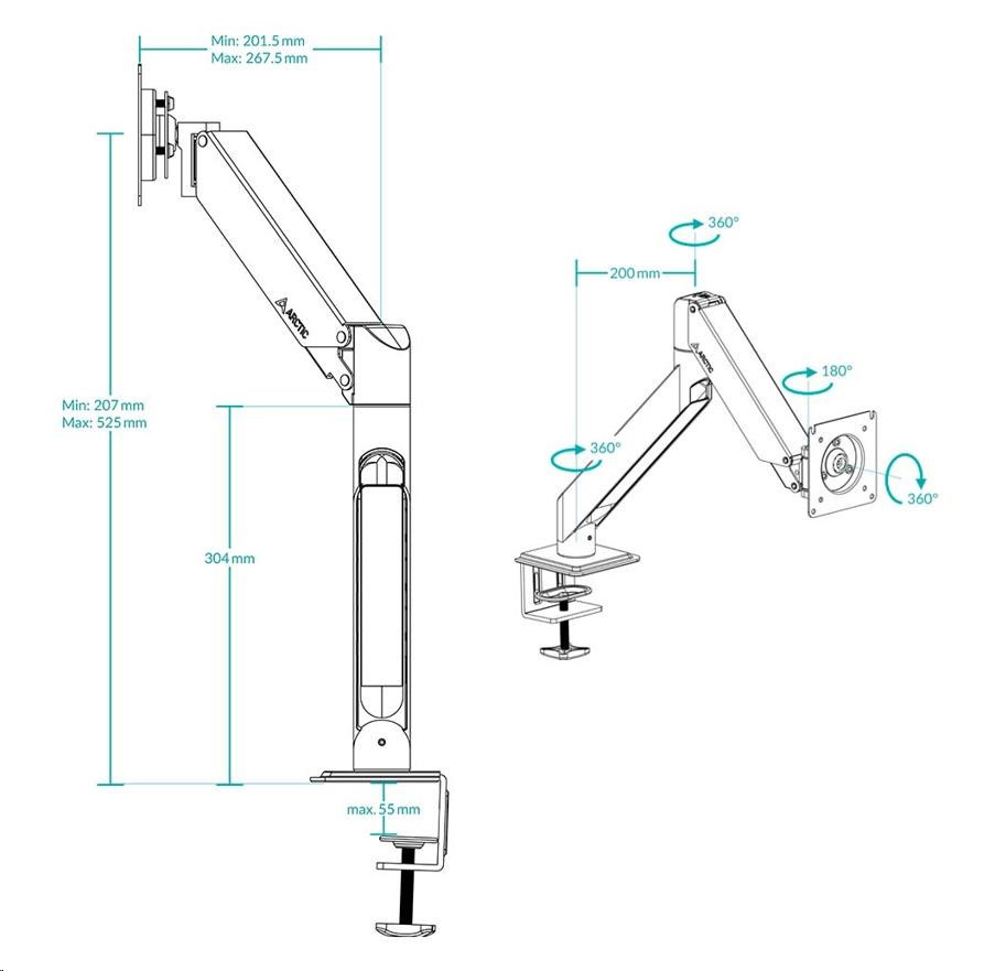 - FULL MOTION FOR MORE COMFORT - Thanks to the approved gas lift technology, the monitor can be moved completely freely in all directions, even after installation. This makes it child's play to pull the monitor up, move it away or completely realign the height, depth and tilt.
