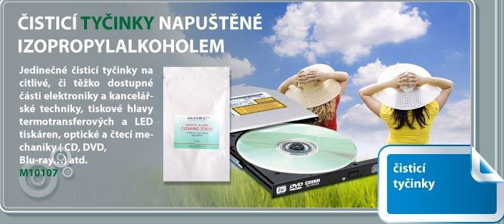 Speciální čisticí tyčinky M10107 MORE na citlivé, či těžko dostupné části elektroniky a kancelářské techniky, tiskové hlavy termotransferových a LED tiskáren, optické a čtecí mechaniky (CD. DVD. Blu-ray…) atd. V balení 2kusy..