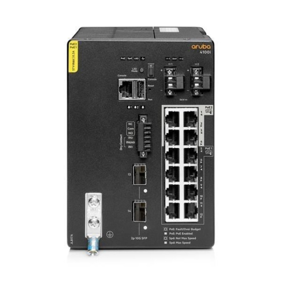 Akční nabídky na váš e-mail| Aruba 4100i 12-port 1GbE (8-port Class 4 POE and 4-port Class 6 POE) 2-port SFP+ DIN Mount Switch (JL817A) | ||