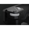 - An adjustable wheel and release button enable easy, toolless setup and removal.