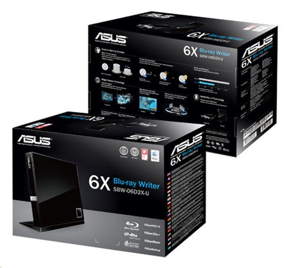 ASUS SBW-06D2X-U - portable 6X Blu-ray slim portable burner with M-DISC support for lifetime data backup and Windows and Mac OS compatibility