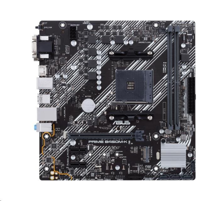 Akční nabídky na váš e-mailAMD B450 (Ryzen AM4) micro ATX motherboard with M.2 support, HDMI/DVI-D/D-Sub, SATA 6 Gbps, 1 Gb Ethernet, USB 3.2 Gen 1 Type-A, BIOS FlashBack™