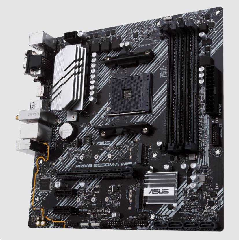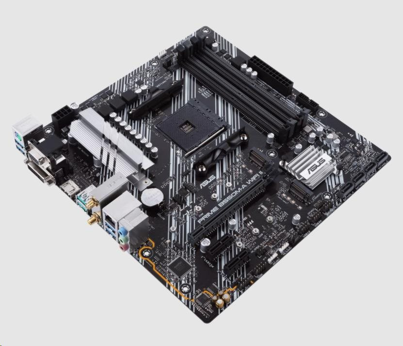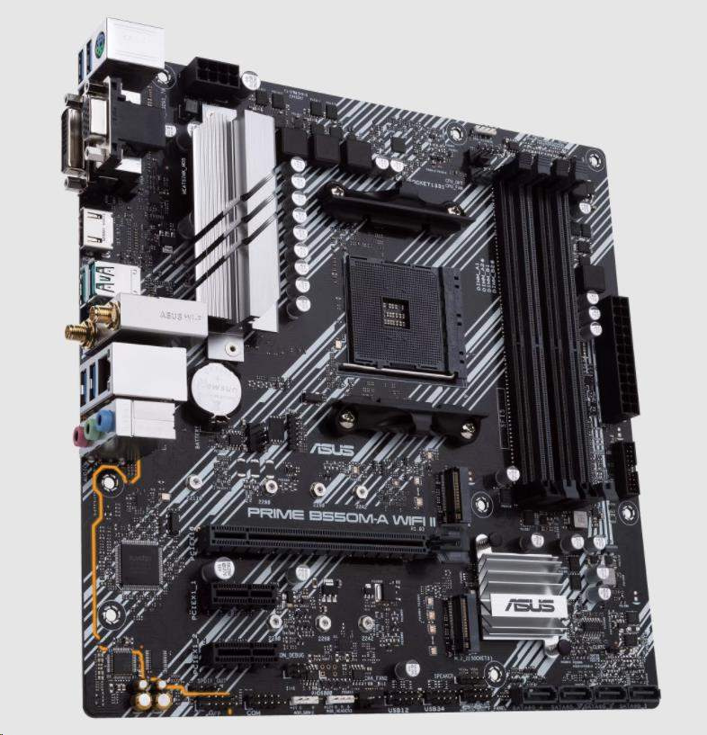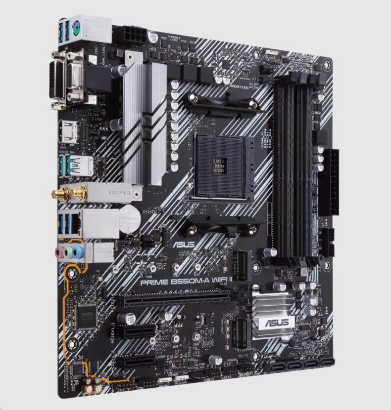 Akční nabídky na váš e-mailAMD B550 (Ryzen AM4) micro ATX motherboard with dual M.2, PCIe 4.0, Wi-Fi 6, 1 Gb Ethernet, HDMI, DVI-D, D-Sub, SATA 6 Gbps, USB 3.2 Gen 2 Type-A, and Aura Sync RGB lighting support