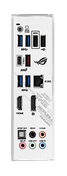 | Back I/O Ports | 1 x Intel® I225-V 2.5Gb Ethernet 1 x DisplayPort 1 x HDMI 2 x USB 3.2 Gen 2 (1 x Type-A+1 x USB Type-C®) 4 x USB 3.2 Gen 1 2 x USB 2.0 1 x Optical S/PDIF out 1 x BIOS FlashBack™ Button(s) 5 x Gold-plated audio jacks |