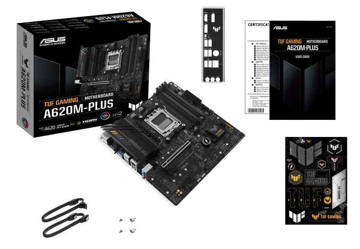 Cables 2 x SATA 6Gb/s cables Miscellaneous 1 x I/O Shield 1 x TUF Gaming sticker 1 x Screw package for M.2 SSD Documentation 1 x TUF Certification card 1 x User guide