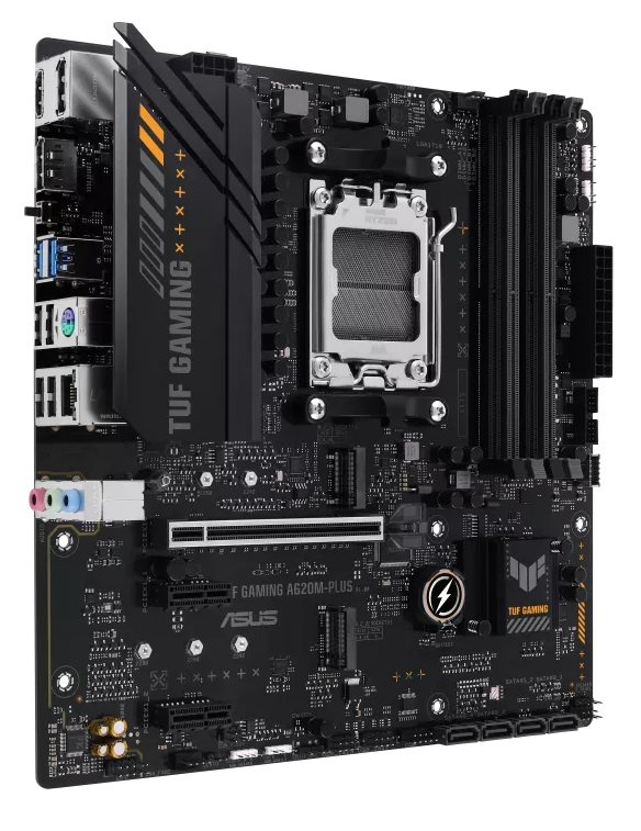 Akční nabídky na váš e-mailTUF GAMING A620M-PLUS is equipped with outstanding features, including 6-layer PCB design, DDR5 6400+(OC), Massive VRM Heatsink, PCIe 4.0 support, dual M.2 slots, Realtek 2.5Gb Ethernet, USB 3.2 Gen 1 ports, front USB 3.2 Gen 1 Type-C®, BIOS FlashBack™, 2 x DisplayPort, HDMI™, Addressable Gen 2 headers, Aura RGB header, Aura Sync, M.2 Q-Latch, Q-LED Core, ASUS OptiMem II, Fan Xpert 2+, Power Saving, Two-Way AI Noise Cancellation, Armoury Crate, ASUS TUF PROTECTION and SafeSlot Core+, which will bring users maximizing performance, stability and compatibility for the very best DIY PC experiences.