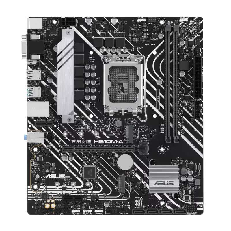 Akční nabídky na váš e-mailIntel® H610 (LGA 1700) mATX motherboard with PCIe 4.0, dual M.2 slots, DDR5, Intel® 1Gb Ethernet, DisplayPort, HDMI™, VGA, USB 3.2 Gen 2 ports, Addressable Gen 2 headers, and Aura Sync