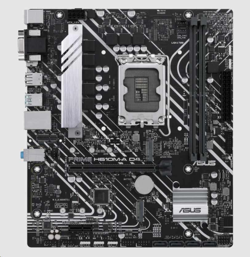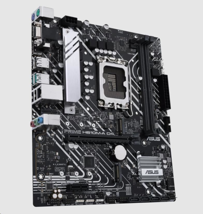 Akční nabídky na váš e-mailIntel® H610 (LGA 1700) mic-ATX motherboard with DDR4, PCIe 4.0, dual M.2 slots, Intel® 1 Gb Ethernet, DisplayPort, HDMI®, D-Sub, USB 3.2 Gen 2 ports, SATA 6 Gbps, Addressable Gen 2 headers, and Aura Sync