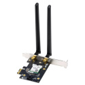 Typ aktivního prvku:Adaptéry PCI-E, Adaptéry Bluetooth; Frekvenční pásmo (GHz):2,4, 5; Podporované standardy:802.11ax; Typ antény:Vestavěná; Použití:Vnitřní; Počet portů LAN:0; Počet portů LAN:0; Počet WAN portů:0; Počet WAN portů:0.Více