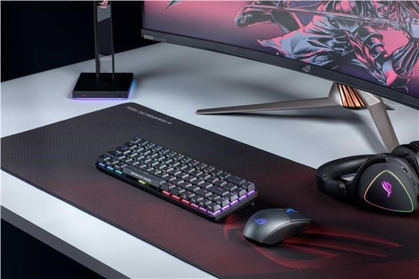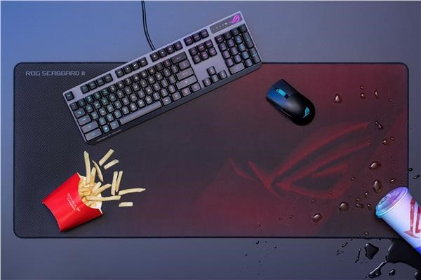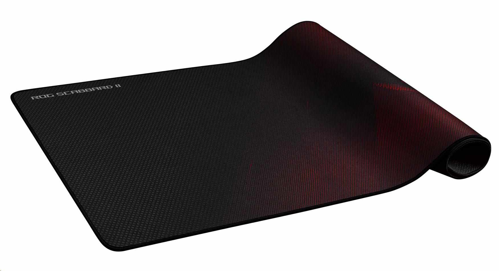 Akční nabídky na váš e-mailROG Scabbard II extended gaming mouse pad with protective nano coating for a water-, oil-and dust-repellant surface, with anti-fray, flat-stitched edges and a non-slip rubber base