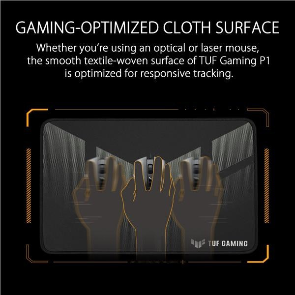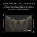 Přenosná herní podložka pod myš s voděodolným povrchem s nanovrstvou, odolným prošíváním proti oděru a protiskluzovou gumovou základnou.
