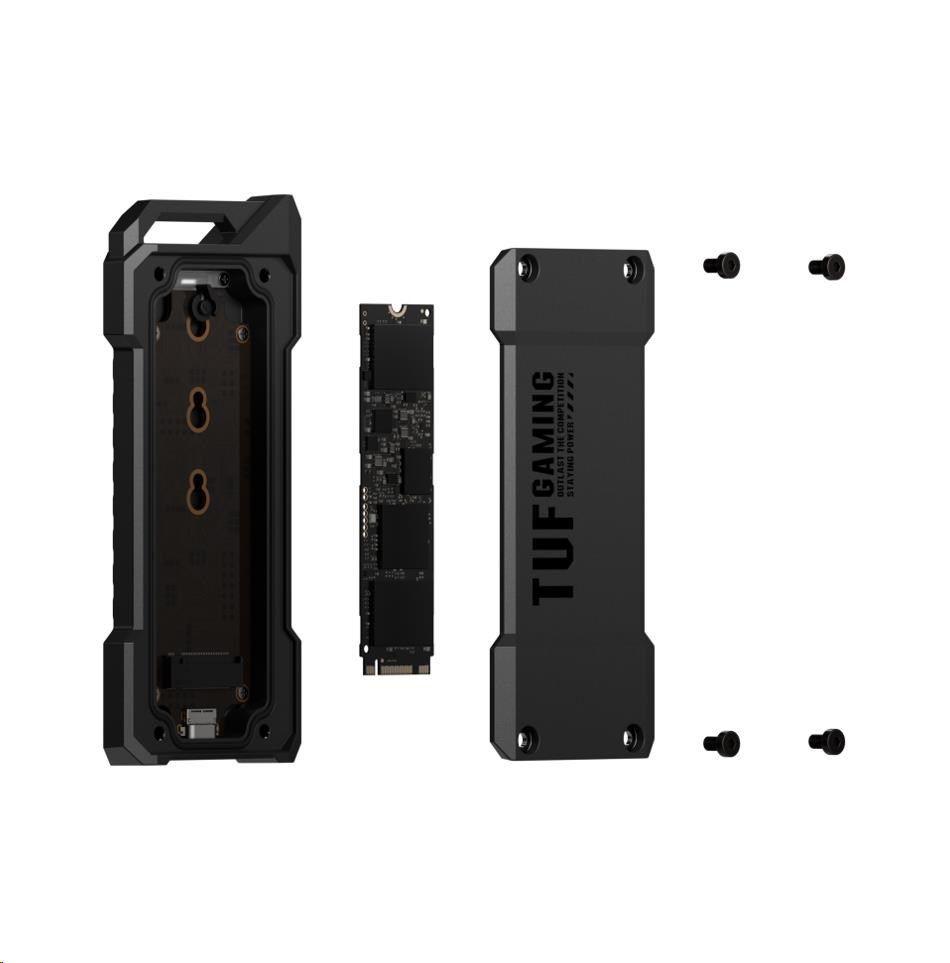 USB-C 3.2 Gen 2x1 SSD enclosure, dual M.2 NVMe PCIe and SATA interfaces, M.2 Q-Latch for easy installation, MIL-STD-810H drop resistance, IP68 water and dust resistance, PS5® and Xbox support