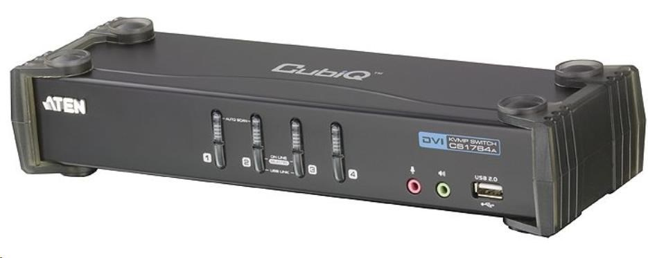 Popis ATEN 4-port DVI KVMP USB, 2port USB HUB, audio, 1.2m kabely