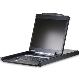 KVM přepínač s integrovanou klávesnicí, touchpadem a LCD 19" ve skladném vysouvacím šuplíku. Vhodný do serverové místnosti, kde Vám ušetří místo. Ke KVM přepínači je možno připojit až 16 PC s rozhraním USB nebo PS/2, je montovatelný do racku. Možnost přepínač ovládat tlačítek, klávesovou zkratkou nebo přes vestavěné OSD menu.