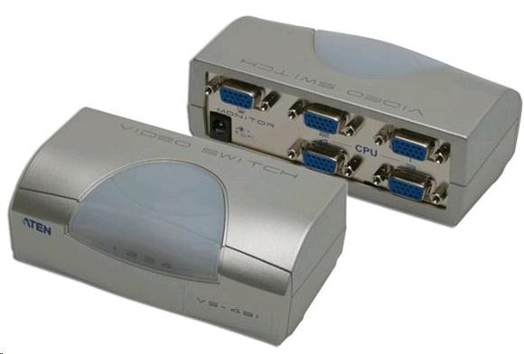 Video elektronický přepínač 4 PC - 1 VGA VS-491 - výběr zdroje signálu pomocí tlačítka - rozlišení až 1920x1440 - VGA, SVGA, Multisync - zesiluje VGA signál - power save mod při vypnutém PC - až 10m vzdálenost kabelů bez ztráty kvality signálu - aktivní prvek, včetně napájecího adaptéru - DDC, DDC2, DDC2B Compatible. Konektory: - vstup 15pin HDB 4x Female - výstup 15pin HDB 1x Female - váha 220g - rozměry 120x65x64mm.