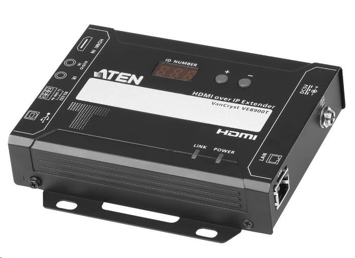 Přístroj ATEN VE8950 Video over IP Extender poskytuje vizuálně bezztrátový 4K AV signál s nízkou latencí na dlouhé vzdálenosti prostřednictvím standardní počítačové sítě a kabelů RJ45.