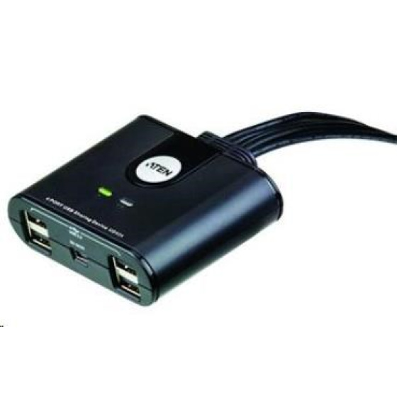 Aten US424 umožní sdílení USB periferií mezi počítači. Umožní čtyřem počítačům sdílet až 4 USB 2.0 zařízení. Pěkný a malý design, díky kabelům vše v jednom.