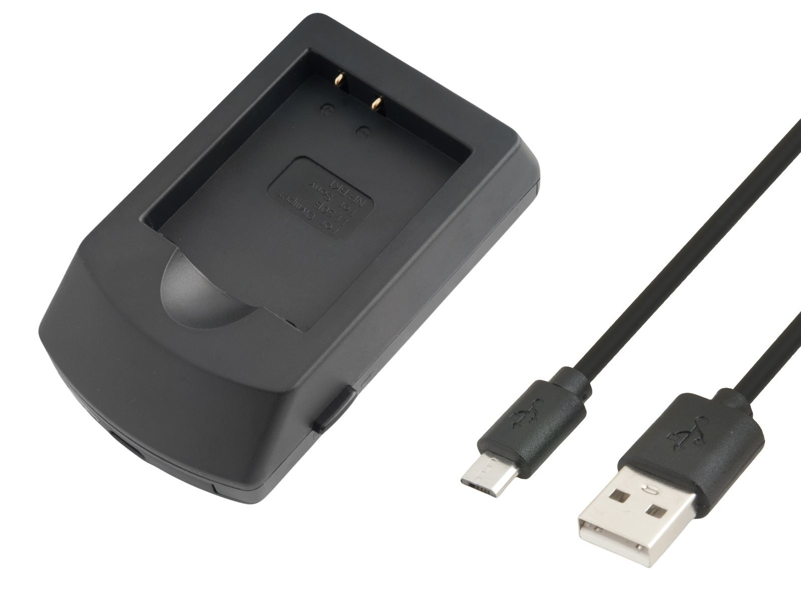 Nabíječka s Micro-USB vstupem pro baterie do fotoaparátů a videokamer. Pro akumulátor: CASIO: NP-150 OLYMPUS: LI-50B, LI-52B, LI-90B, LI-92B, Li92B SONY: NP-BK1 PENTAX: D-Li92 PANASONIC: VW-VBX090, VW-VBX090 GK, VW-VBX090-W RICOH: DB-100, DB- 110 KODAK: LB-050, LB-052 Obsah balení: návod, nabíjecí základna, nabíjecí redukce, kabel..