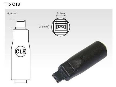Konektor, kterým lze redukovat konektor C.4 univerzálního síťového adaptéru na konektor C18 (6,54mm x 3,2mm) vhodné pro notebooky Dell