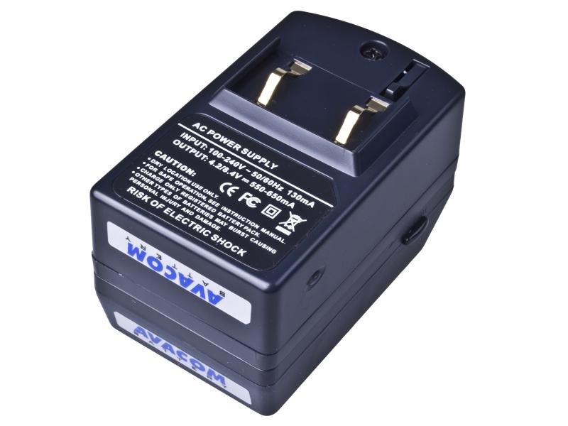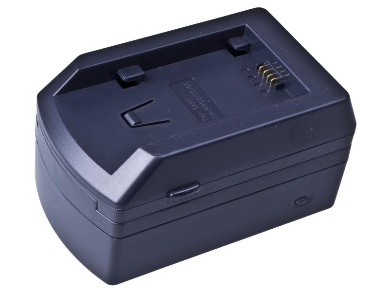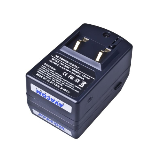 Kompaktní síťová nabíječka pro baterie digitálních fotoaparátů a videokamer.