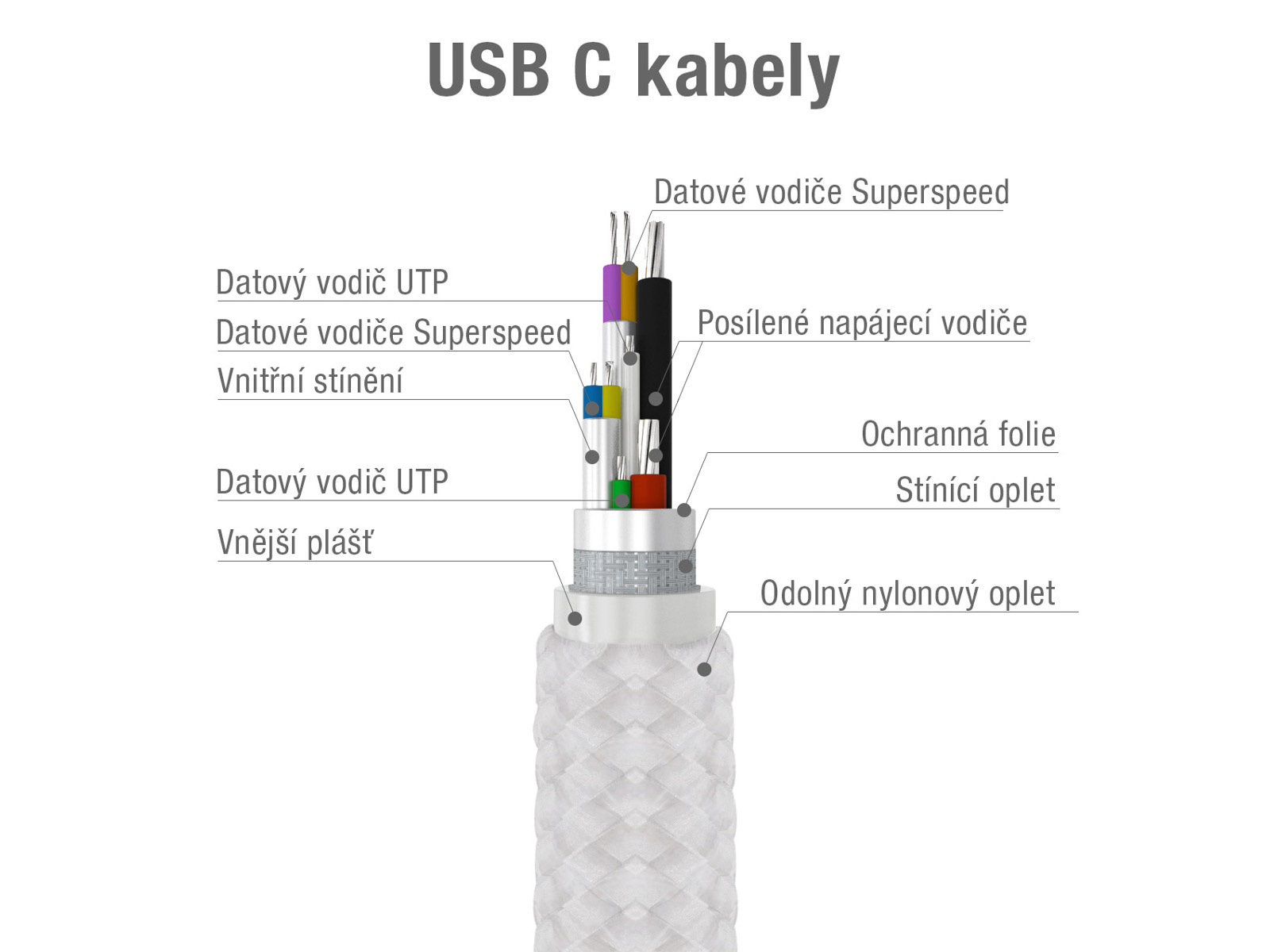 Umožňuje přenášet data mezi PC, tabletem a telefonem s USB-C portem. Vhodný pro nabíjení smartphonů, tabletů s USB-C portem. Díky délce 100cm ideální k síťovým nabíječkám nebo nabíječkám do auta.