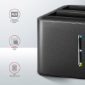 • LED indikující napájení SSD/HDD docku a aktivitu disků v obou šachtách.