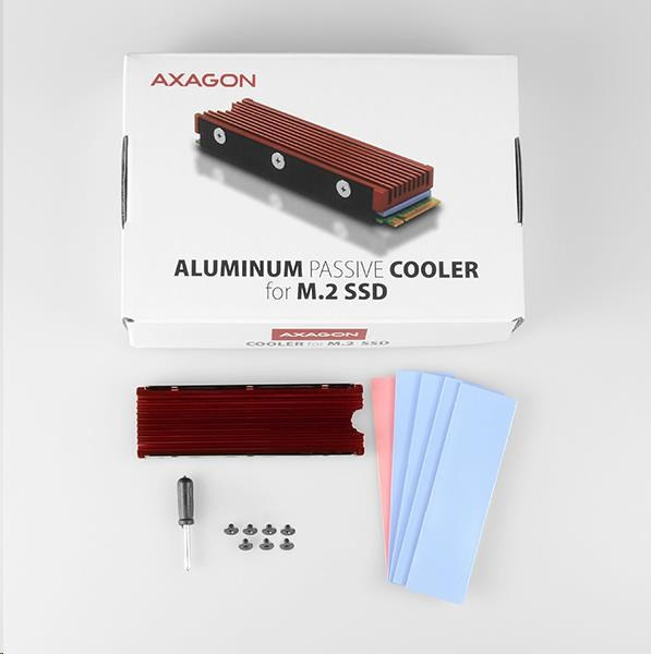 Díky snadné montáži a kompaktním rozměrům lze chladič použít nejen s M.2 adaptéry AXAGON, ale také s M.2 (NGFF) sloty na základních deskách apod. Díky kovovému rámečku chladič odvádí teplo z obou stran M.2 disku a dosahuje tak maximální efektivity chlazení.