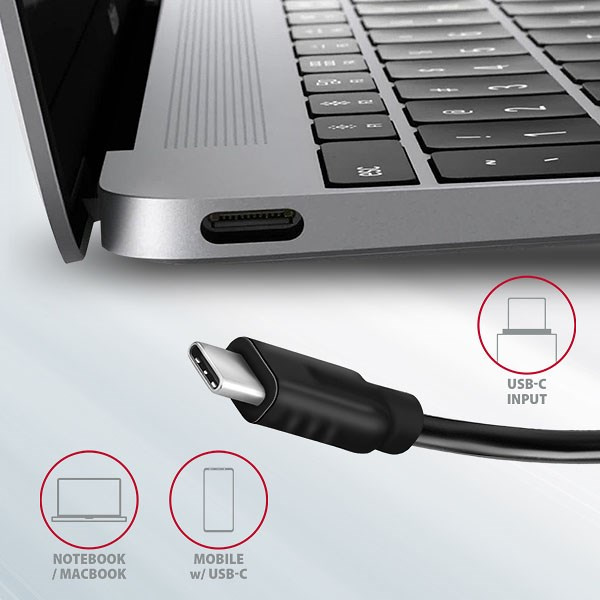 • Výkonné nabíjení mobilních zařízení proudem až 3A při 5V v USB-C portech hubu.