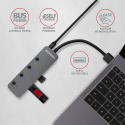 Akční nabídky na váš e-mailKovový USB 3.2 Gen 1 (USB 3.0) hub AXAGON HUE-MSA nejen připojí k notebooku nebo počítači až čtyři USB zařízení současně, ale nabízí též vypínání USB portů a funkci Charging hub. Kovové tělo hubu je vyrobeno z hliníku a zajišťuje tak dokonalou mechanickou ochranu pro časté přenášení. Elegantní, jemně strukturovaný povrch brání nežádoucím otiskům. Gumové nožky zabraňují klouzání hubu po stole. Napevno uchycený USB kabel délky 20 cm je ideální pro uživatele mobilních zařízení.