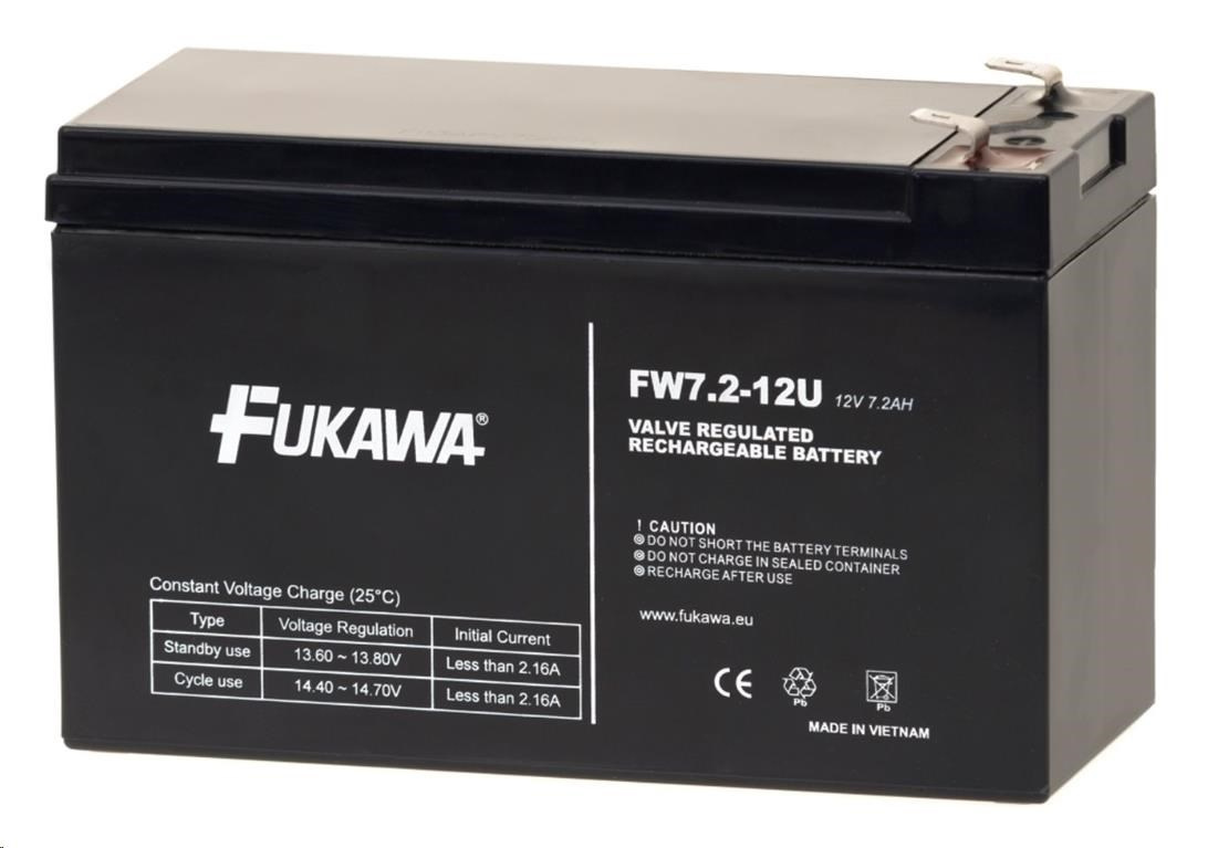 Technické parametryVýška: 100.0 mmDélka: 151.0 mmŠířka: 65.0 mmHmotnost (netto): 2.200 kgNapětí: 12 VKapacita v Ah: 7.2 AhFaston: 6.3 mmŽivotnost: 5 let