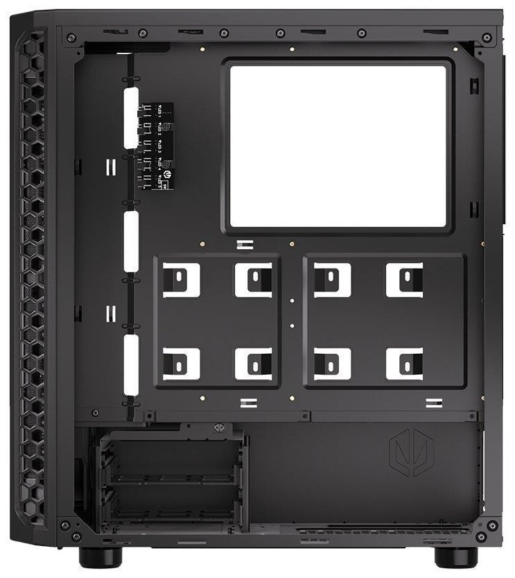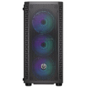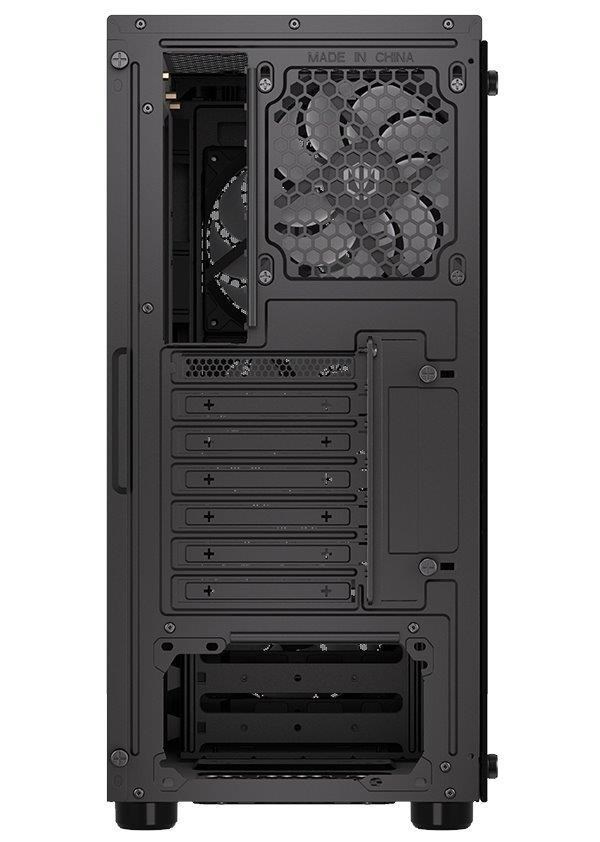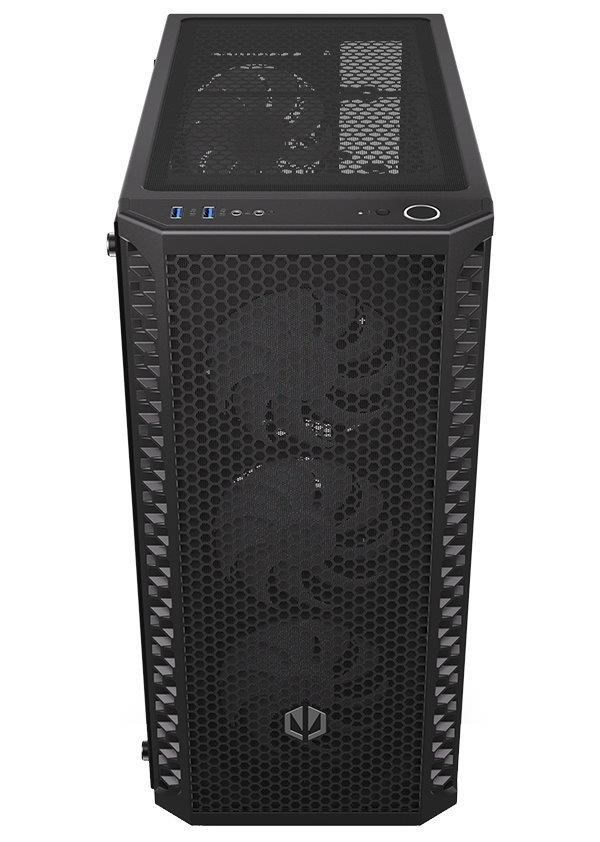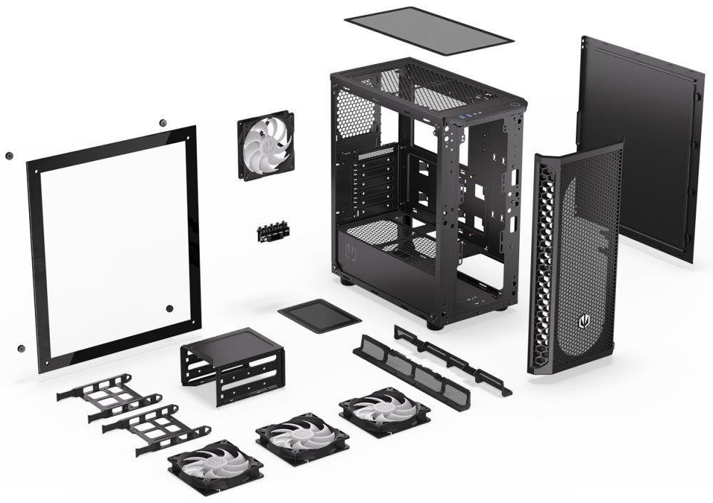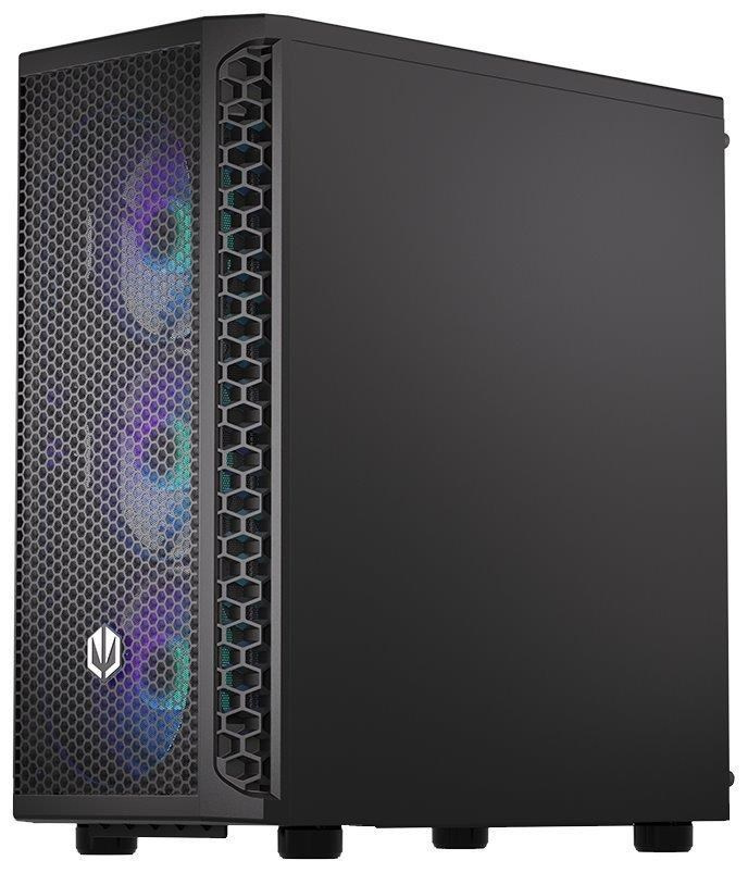 Akční nabídky na váš e-mailSkříň formátu Middle Tower s průhlednou bočnicí z tvrzeného skla nabízí dvě 2,5" pozice pro SSD disky a dvě 3,5" pozice pro pevné disky. Na horní části se nachází dva USB 3.0 porty, sluchátkový výstup a audio vstup pro mikrofon. Vybavena je čtyřmi 120 mm ventilátory s ARGB podsvícením, které spolu s perforovaným čelním panelem zajišťují dostatečné proudění vzduchu. Důmyslné řešení umožňuje pohodlné umístění až 360 mm dlouhého výměníku vodního chlazení na přední straně. Ve skříni je dostatek prostoru pro chladič CPU do výšky až 161 mm a grafickou kartu o délce až 350 mm. Dodávána je bez zdroje. Součástí je také sada prachových filtrů.