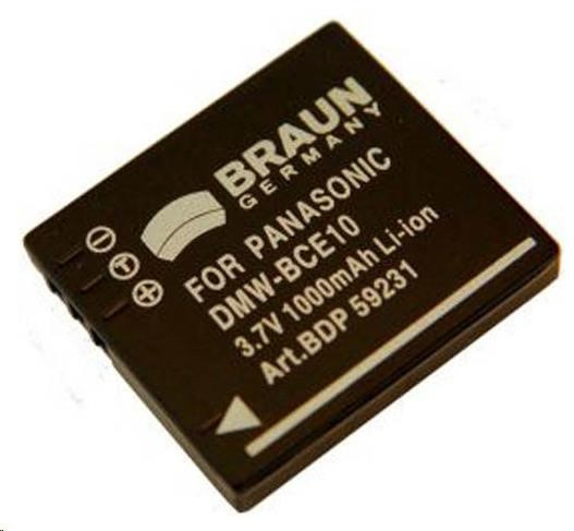 Li-lon akumulátor Braun BDP-PVBJ10 (25, Panasonic BCE10, S008 - 3,7 V/1320 mAh) pro digitální fotoaparáty PANASONIC Lumix DMC FS3, FS5, FS20 DMC FX30, FX33, FX35, FX37, FX55, FX500 Tento akumulátor je dodáván v částečně nabitém stavu. Před použitím je vhodné akumulátor nabít. Plné kapacity akumulátoru může být dosaženo až po cca 4-5 nabíjecích cyklech..