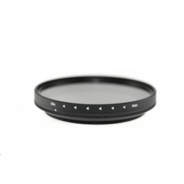 Neutrální šedý filtr ND Braun s plynule nastavitelnou hodnotou zčernání v rozmezí faktoru 4-400x (2-8 clon). Filtr se dodává včetně pouzdra a krytky (vnější průměr filtru je větší než vnitřní) eventuelně redukčních kroužků. Velké rozmezí zčernání hlavně pro videozáznamy - kromě prodloužení expozičního času slouží hlavně k snížení hloubky ostrosti..