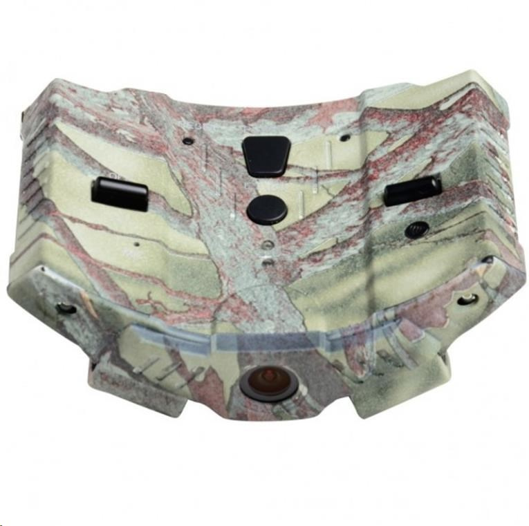 Braun MAWERICK OutdoorCam Camouflage je speciální outdoorová minikamera na kšiltovku, 5 MP CMOS, video MOV FullHD/30fps, foto JPG 12MP, 120° objektiv 3,8mm/2,4, Antishake, 2x světla LED, odolnost IP54, mikrofon, interní Li-Ion akumulátor 3,7V/1150 mAh, max 2h provozu. Slot pro Micro SD karty s kapacitou do 32 GB, LED kontrolky nastavení, AV/HDMI Video out, Mini USB2 pro přenos dat a nabíjení. Rozměry: 105 x 38 x 75 mm, hmotnost 88g. Tato minikamera má exklusivní design a na korní části má dva klipy pro uchycení na kšilt čepice. LED světla lze využít i samostatně bez záznamu. Dodává se včetně Mini USB a AV (Mini Jack/Cinch) kabelu..