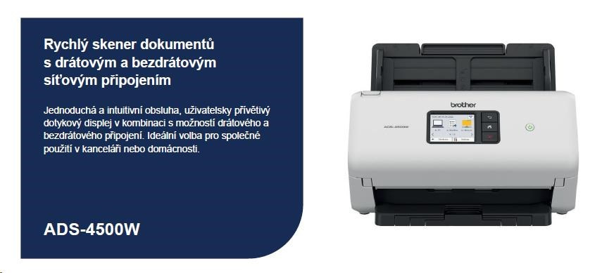Popis BROTHER skener ADS-4500W DUALSKEN A4 35ppm/70dual 600x600 60ADF USB LAN WIFI - display 7.1cm