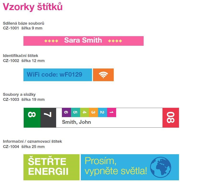 Klíčové aplikace Foto projekty, koláže a deníky Typ média / Kontinuální plnobarevná role / Dostupné šířky pásek / 9, 12, 19, 25 a 50 mm Wi-Fi USB