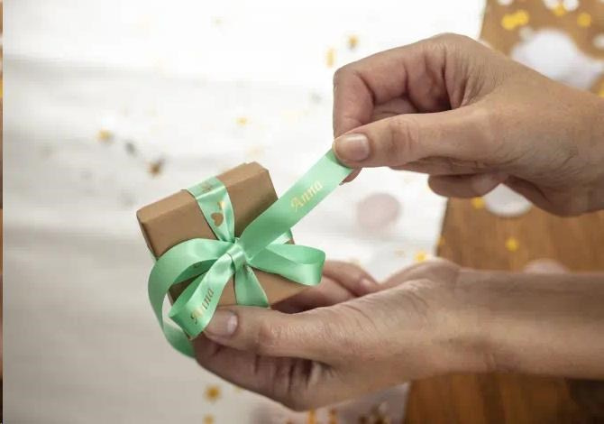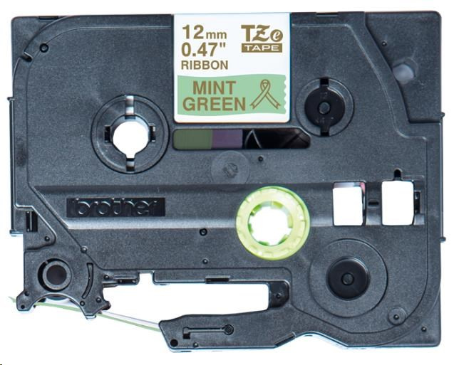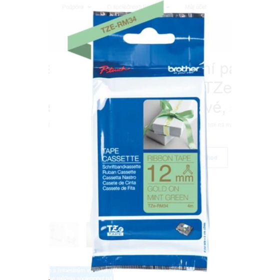 Popis BROTHER TZE-RM34 - kazeta TZ šířky 12mm, TEXTILNÍ páska 4m- pro tvorbu dárků - NELEPÍCÍ - MÁTOVÁ PÁSKA ZLATÝ POTISK gold